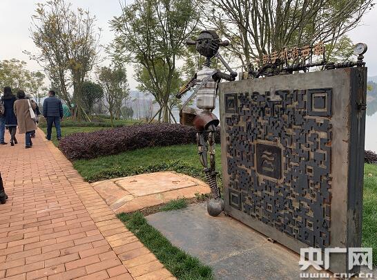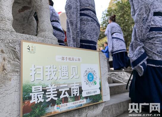 在位于云南彌勒市的東風韻文化小鎮大門外,放置著一塊大型“一部手機游云南”App二維碼,游客可掃碼下載。(央廣記者 孫冰潔 攝)