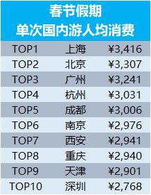 春節假期國內游消費賬單:上海人出發最多,花費最高