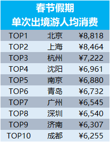 春節出境游消費力十大城市榜單公布:北京人均花費近9000元