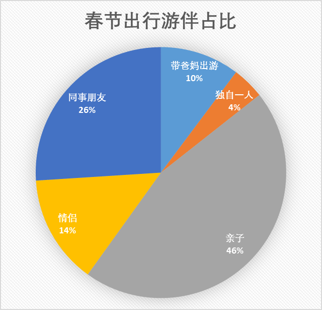 和誰一起春節出游?根據攜程跟團游和自由行訂單數據,親子游是春節假期出游的主流,占比達46%,利用難得的假期和孩子共度是多少父母的選擇。而選擇和朋友出游的占比也不少,達到了26%。