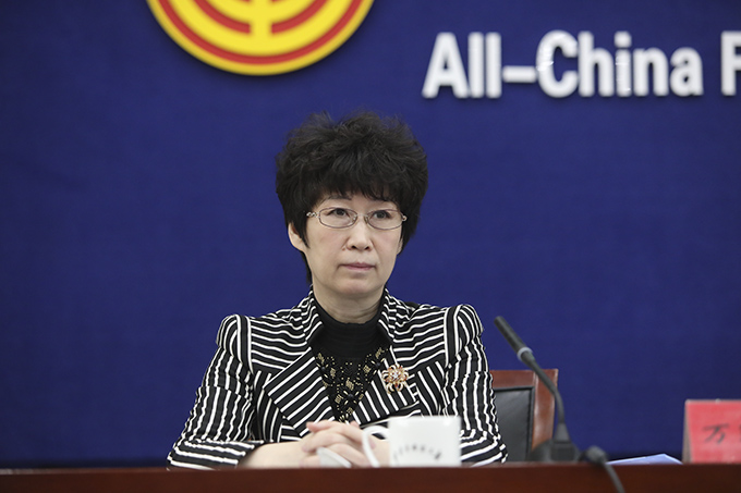 全總新聞發言人、宣教部副部長萬珍麗出席發布會。圖片來源:中華全國總工會網站