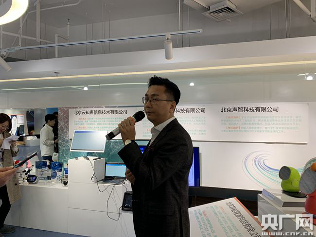 北京市海淀區中關村科技園內,一名科技企業負責人向記者介紹其公司研發的人工智能產品。(央廣網記者 孫冰潔 攝)