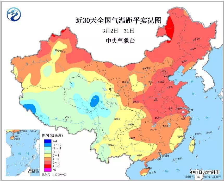 3月以來,我國中東部大部地區(qū)氣溫較常年同期偏高(來源:中央氣象臺)