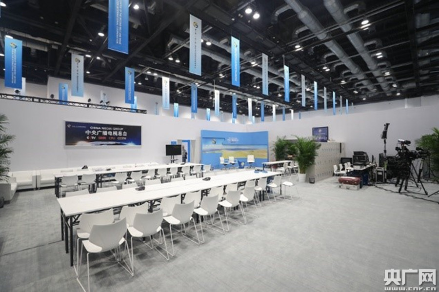 據了解,新聞中心媒體公共工作區2200余平方米,記者工位546個,提供中英文公用筆記本電腦210臺。