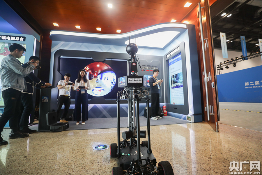 工作人員正在操作智能遙控VR拍攝車。(央廣網記者 韓靖攝)