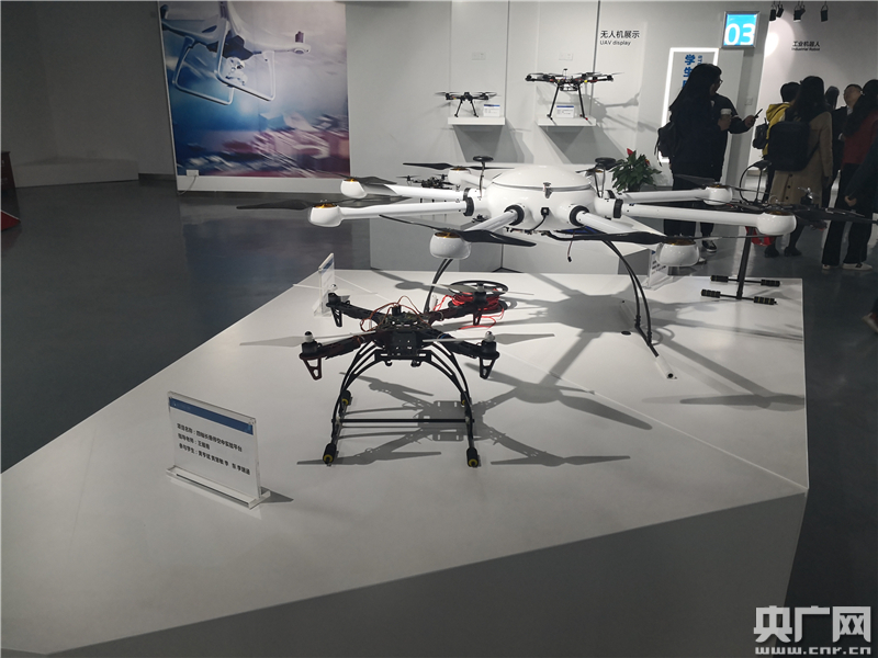 湖南大學(xué)機(jī)器人學(xué)院內(nèi),學(xué)生們研發(fā)的機(jī)器人品種多樣。(央廣網(wǎng)記者 劉一荻 攝)