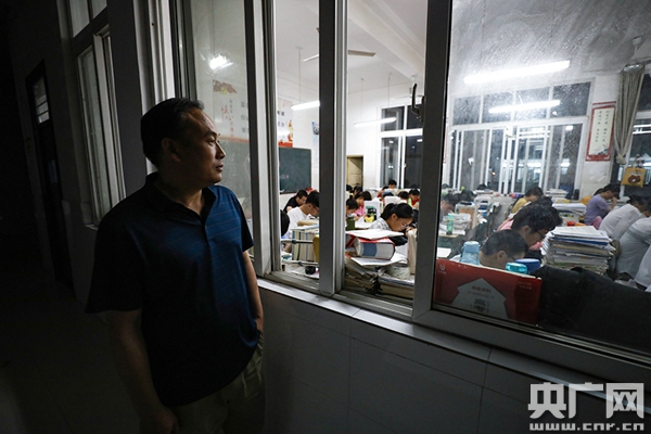 河南省舞鋼市第一高級中學(xué),師生積極備考,圖為一名老師在教室外關(guān)注學(xué)生自習(xí)情況。(央廣網(wǎng)記者 張凱航 攝)