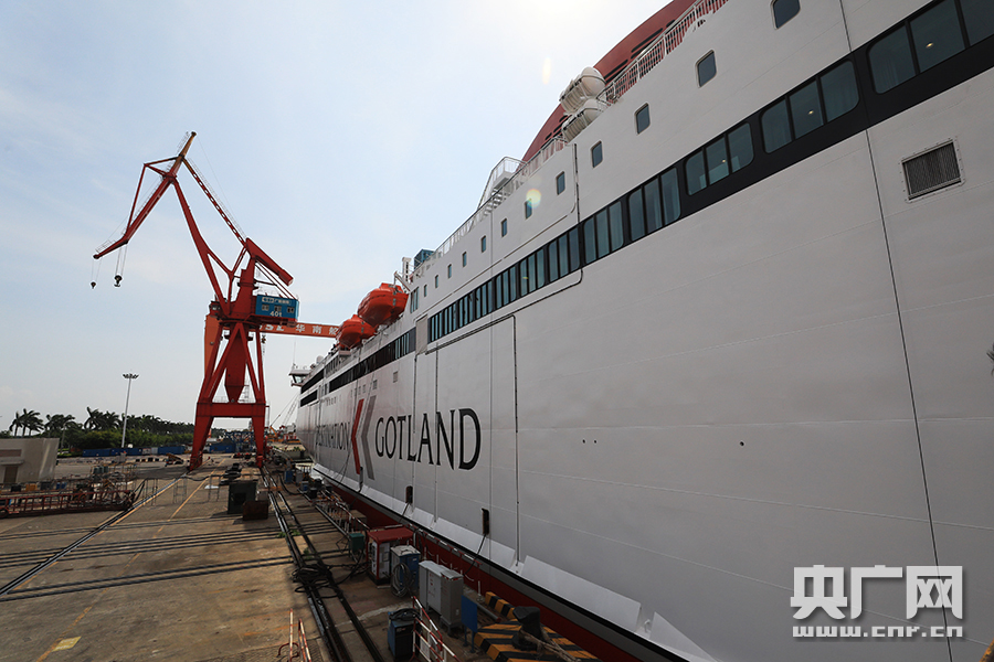 廣船國際為瑞典格特蘭航運公司建造的雙燃料高速豪華客滾船2號船。(央廣網記者石昊鑫攝)
