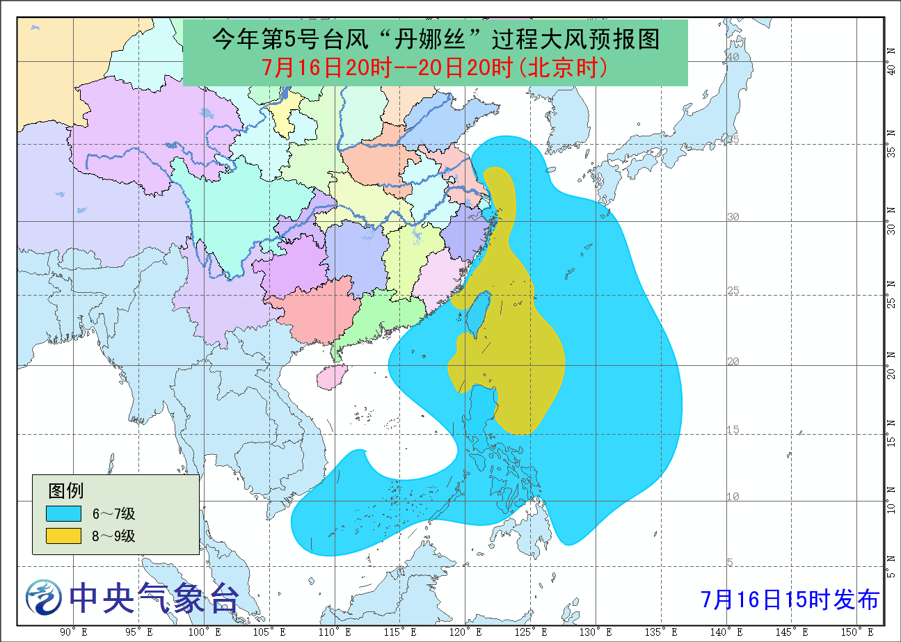 今年第5號臺風“丹娜絲”過程大風預報圖(圖片來源:中央氣象臺)