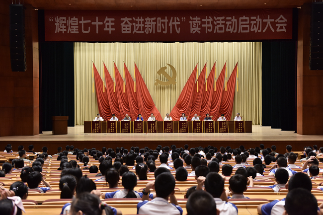 7月21日,以“輝煌七十年 奮進新時代”為主題的第27屆全國青少年愛國主義讀書教育活動啟動大會在京舉行。圖為啟動大會現場。(全國婦聯供圖)