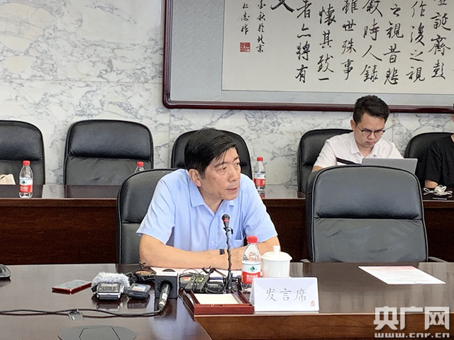 圖為霍建國在研討會發言。(央廣網記者 馬文靜 攝)