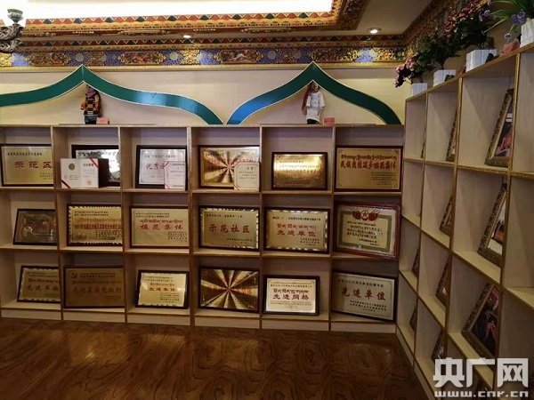 圖為位于河壩林社區民族團結活動室內的榮譽墻(央廣網記者 李志勇 攝)