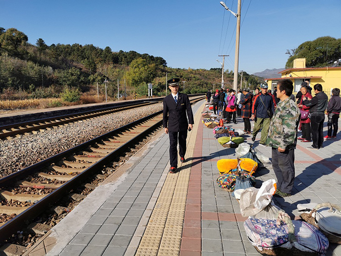 據承德車務段新杖子站長崔靖宇介紹,該站點一年四季都有“大筐隊”旅客乘車進城,每天有百十來人。工作人員和老鄉們都很熟悉,會盡可能地幫助他們,如遇到列車運行圖調整列車車次時間,他們會第一時間告訴村干部,通知到老鄉;平時加強安全宣傳,還會為“大筐隊”開辟綠色通道,把貨運到離上車最近的地方;車站還會積極跟調度部門溝通,在調整運行圖時科學設置攜帶行李較多的“大筐隊”上下車的時間。