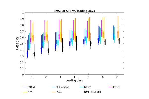 海表溫度7天預報均方根誤差對比(央廣網發 自然資源部供圖)
