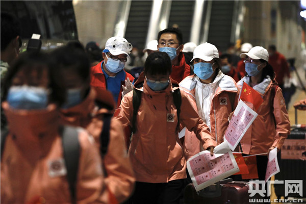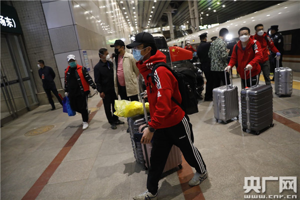 央廣網北京3月26日消息(記者王晶 張凱航 李帥)“你們辛苦了!歡迎回家!”昨天(25日)21時10分,由中國鐵路北京局集團有限公司北京客運段值乘的G68次列車緩緩開進北京西站。在抵京的人群中,有一群特殊的旅客,他們是來自北京中醫藥大學東直門醫院、東方醫院和中國醫學科學院檢測隊的援助湖北醫療隊隊員,共計60余人。