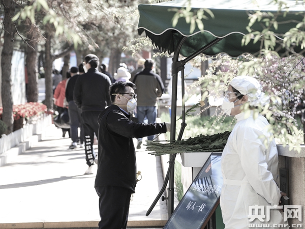 清明節(jié)當(dāng)日,八寶山人民公墓加強(qiáng)限流、防護(hù)措施,更多市民選擇不到現(xiàn)場(chǎng)的“云祭掃”(央廣網(wǎng)記者 張佳琪 攝)