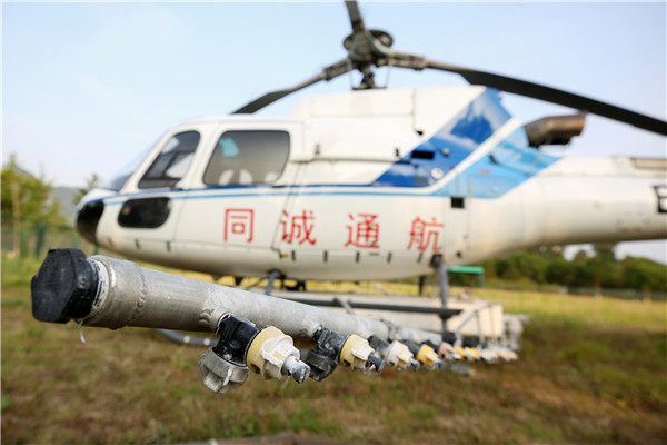 飛機防治的每畝用藥量僅20克,遠低于人工地面防治方式(央廣網發 北京市園林綠化局供圖)