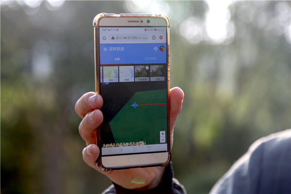 利用飛機防治作業質量監測監管平臺,飛機起飛后林保人員可在手機端和電腦端實時查看飛防路線、飛防區域、面積大小以及藥劑噴灑的瞬間流量等情況(央廣網發 北京市園林綠化局供圖)