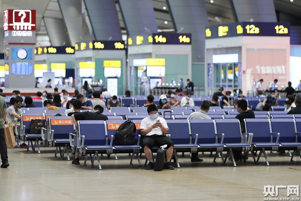 6月18日,北京南站,旅客正在候車(央廣網(wǎng)記者 韓靖 攝)