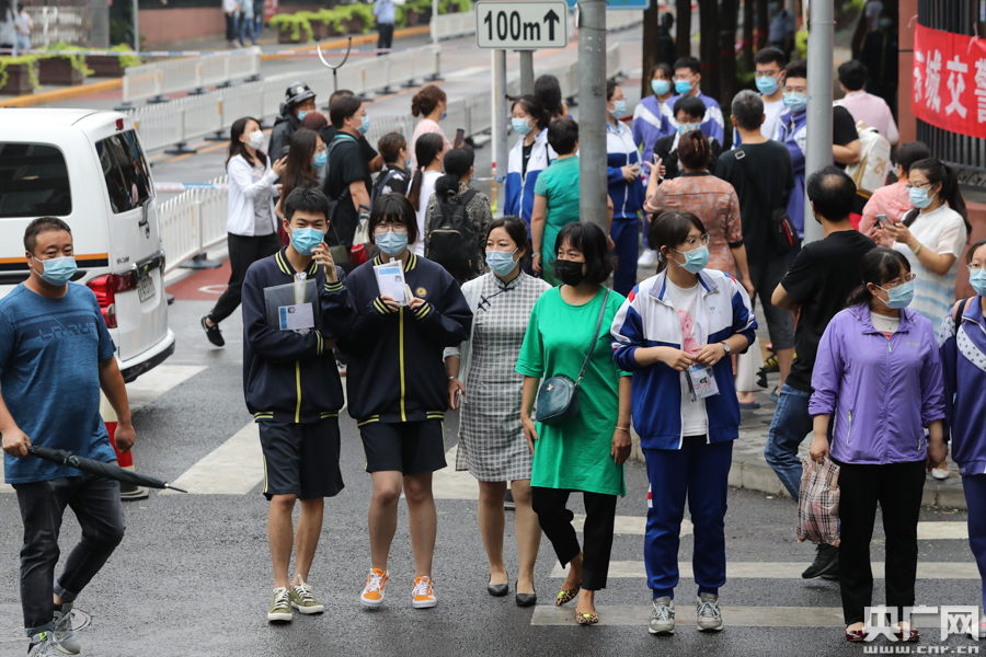 7月9日,北京廣渠門中學考點,物理科目考試結束后考生走出考場(央廣網記者 韓靖 攝)