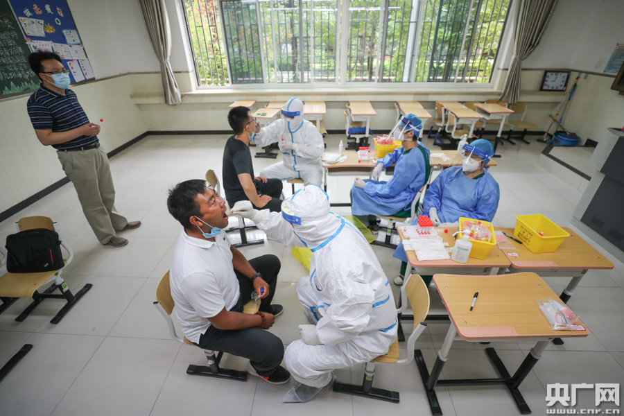 7月4日,北京市通州區運河中學考點,參與高考考務工作的所有教職員工共計113人及高三送考教師20人當日進行了核酸檢測(央廣網記者 韓靖 攝)