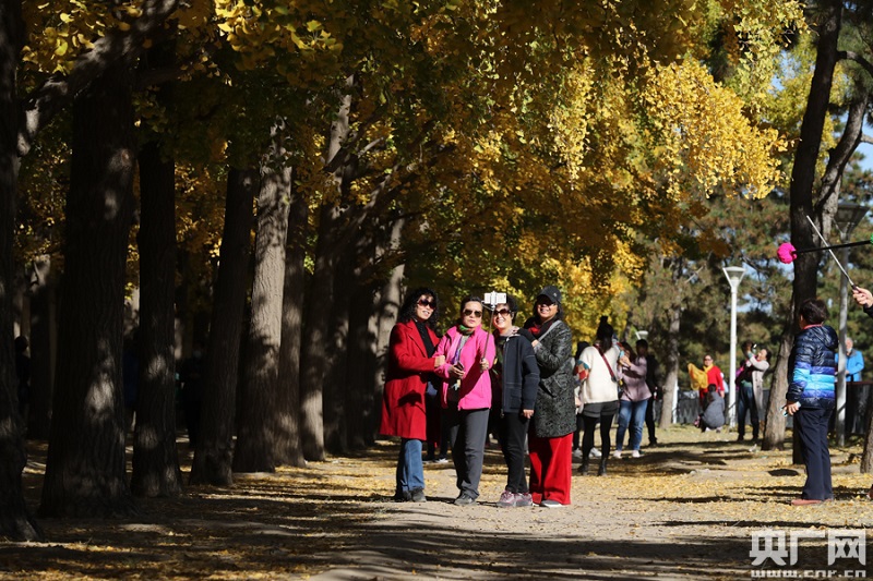 11月3日,釣魚(yú)臺(tái)銀杏大道,市民們前來(lái)欣賞銀杏景觀(央廣網(wǎng)記者 韓靖 攝)