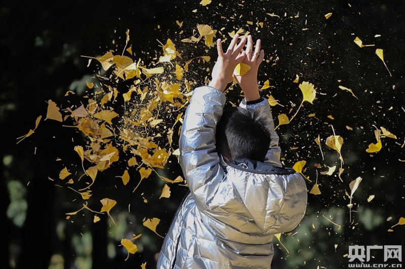 11月3日,地壇公園,一個(gè)小男孩在銀杏樹(shù)下玩耍(央廣網(wǎng)記者 韓靖 攝)