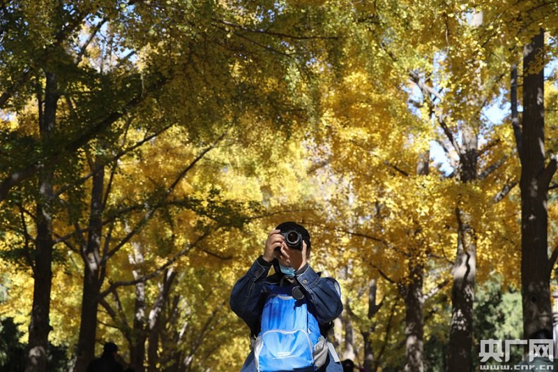 11月3日,五塔寺,市民在古銀杏樹(shù)下拍照(央廣網(wǎng)記者 韓靖 攝)