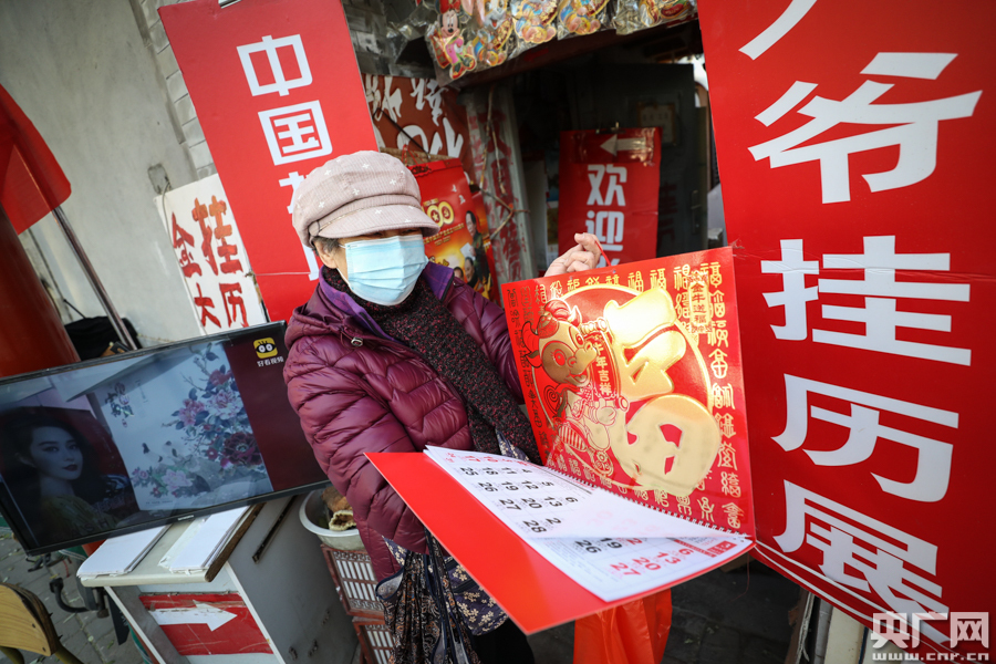 王阿姨向記者展示剛剛購買的掛歷(央廣網(wǎng)記者 韓靖攝)