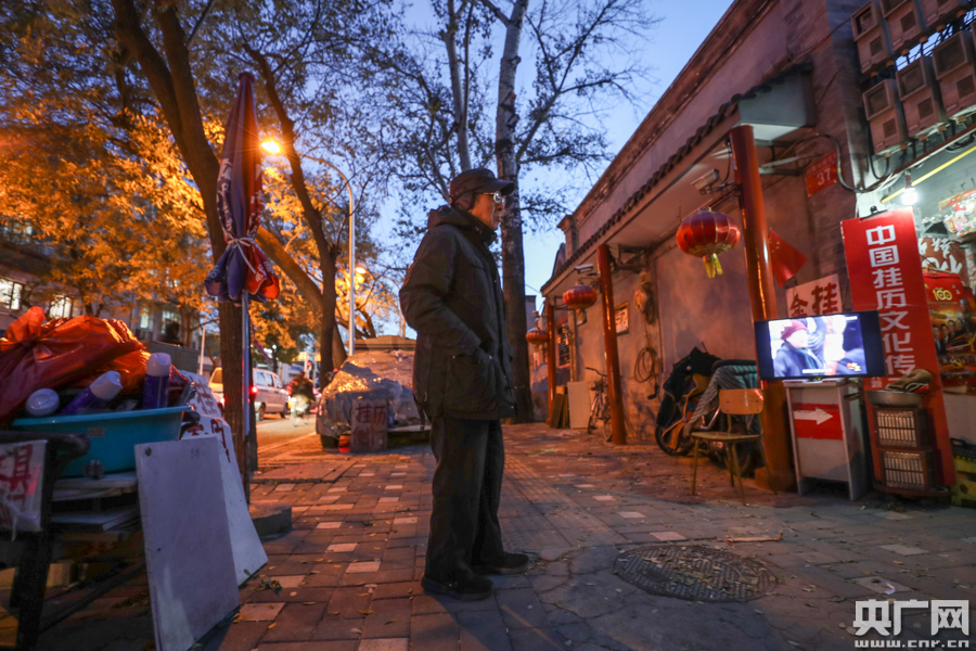 傍晚時(shí)分,金安光在店外等待顧客(央廣網(wǎng)記者 韓靖攝)