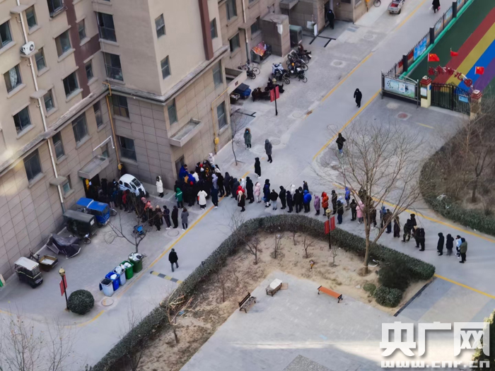石家莊市一居民小區內,群眾排起長隊等待核酸檢測