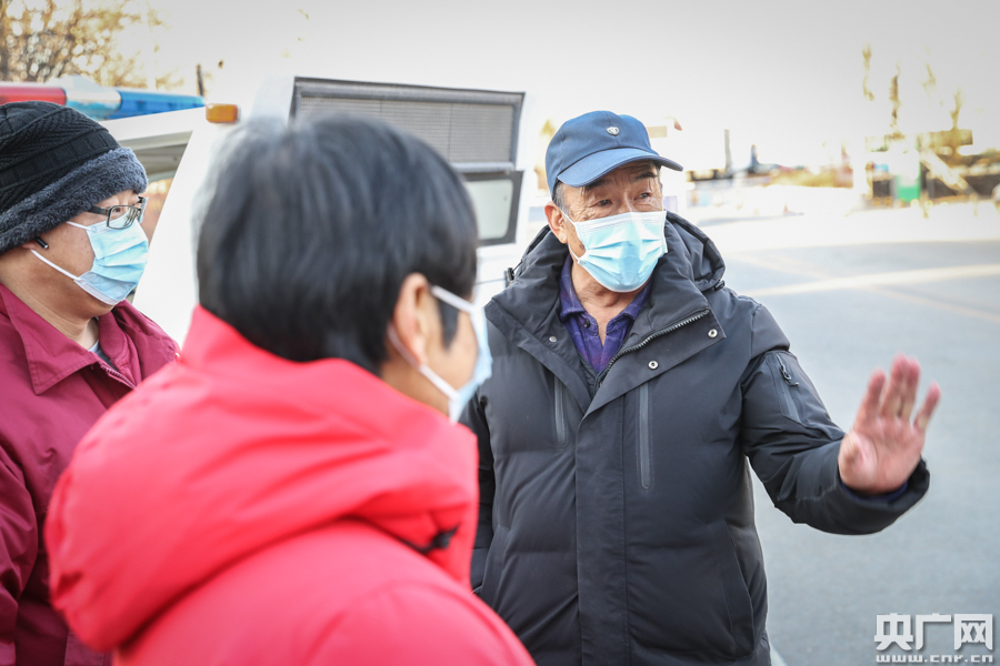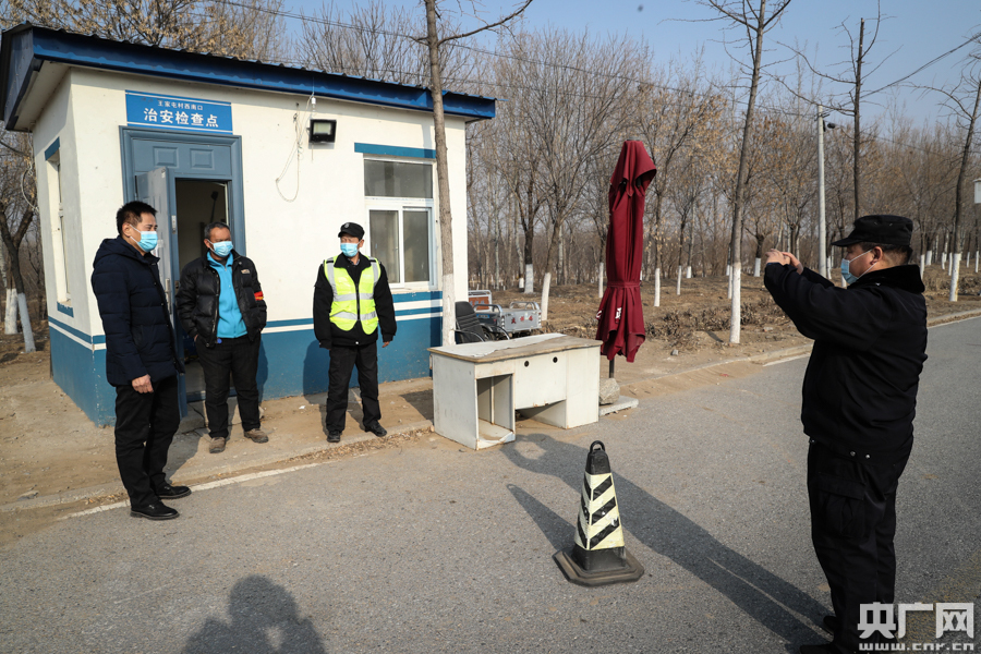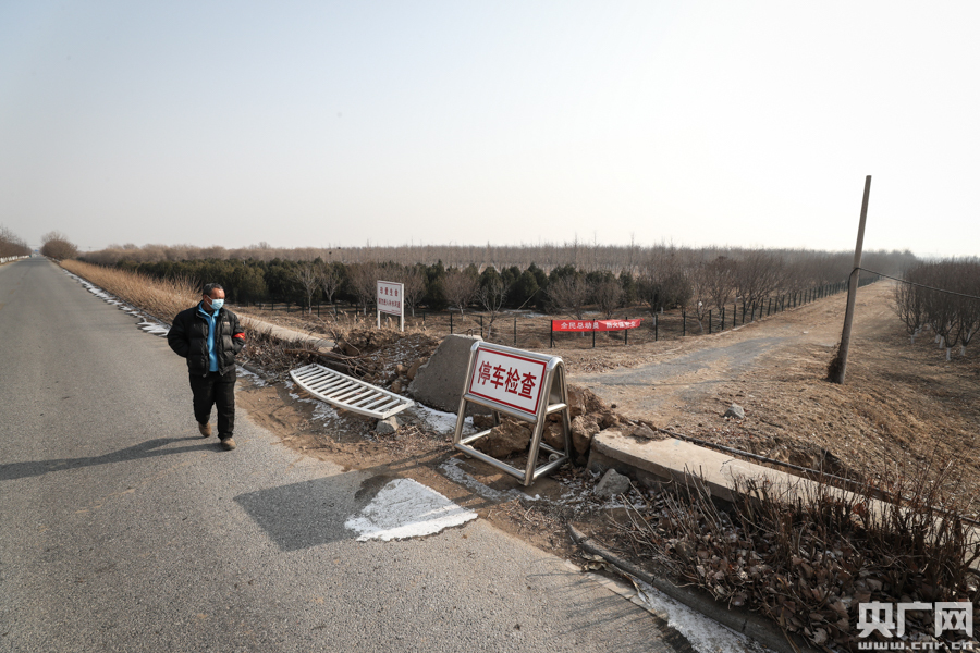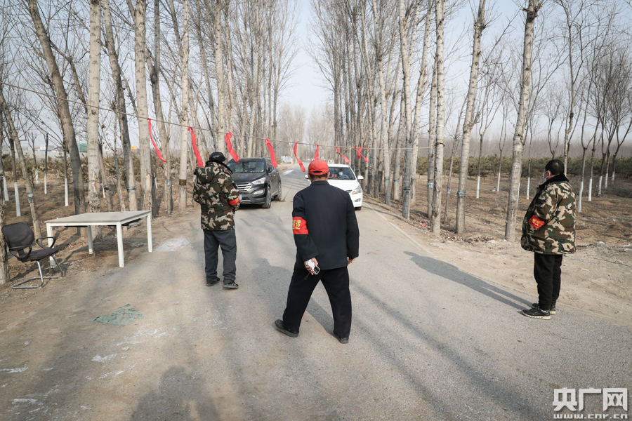 防疫人員楊福祿正在田家營村西南卡口執勤(央廣網記者 韓靖 攝)