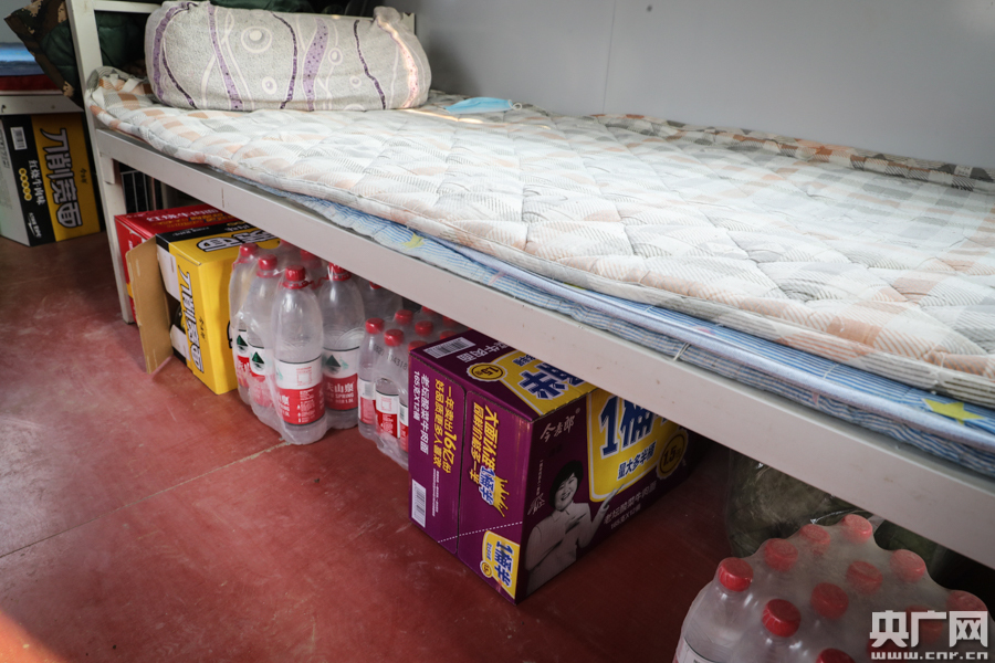崗亭內防疫人員的后勤保障物資(央廣網記者 韓靖 攝)