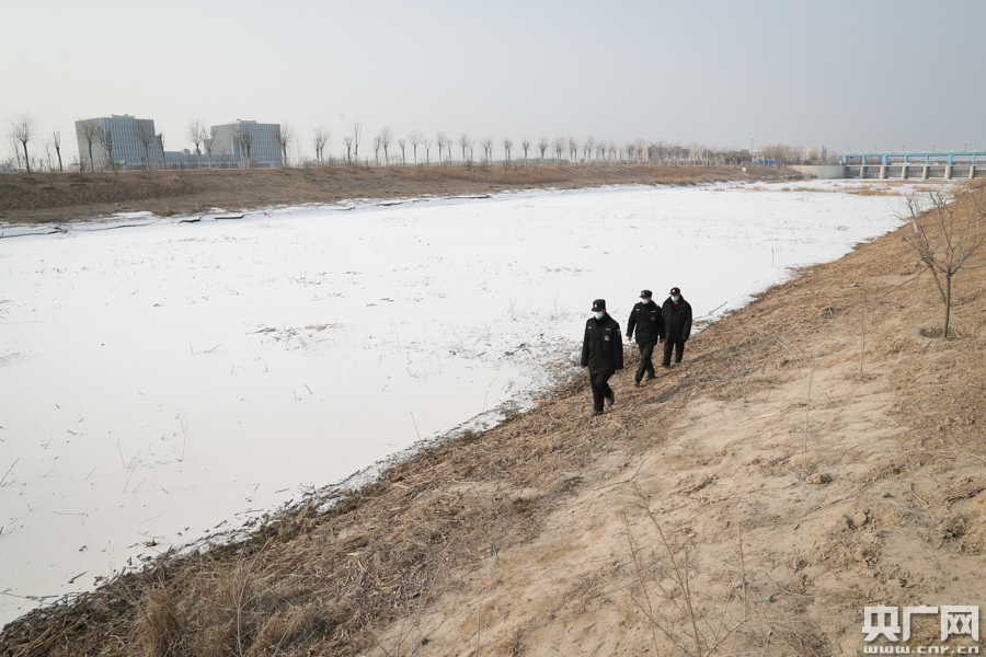 前不久的一場小雪讓永興河的冰面披上了銀裝,1月21日,禮賢鎮綜治辦的梁國東和同事正在河邊巡邏。這條河蜿蜒在北京與河北邊界,禮賢鎮在14公里的流域沿線設有4個卡口,采用物理隔離加人防的模式,按照三班倒進行24小時值守。
