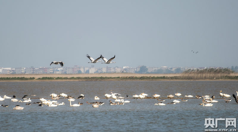 候鳥(niǎo)在淺水灘上棲息(央廣網(wǎng)發(fā) 通訊員章斌 攝)