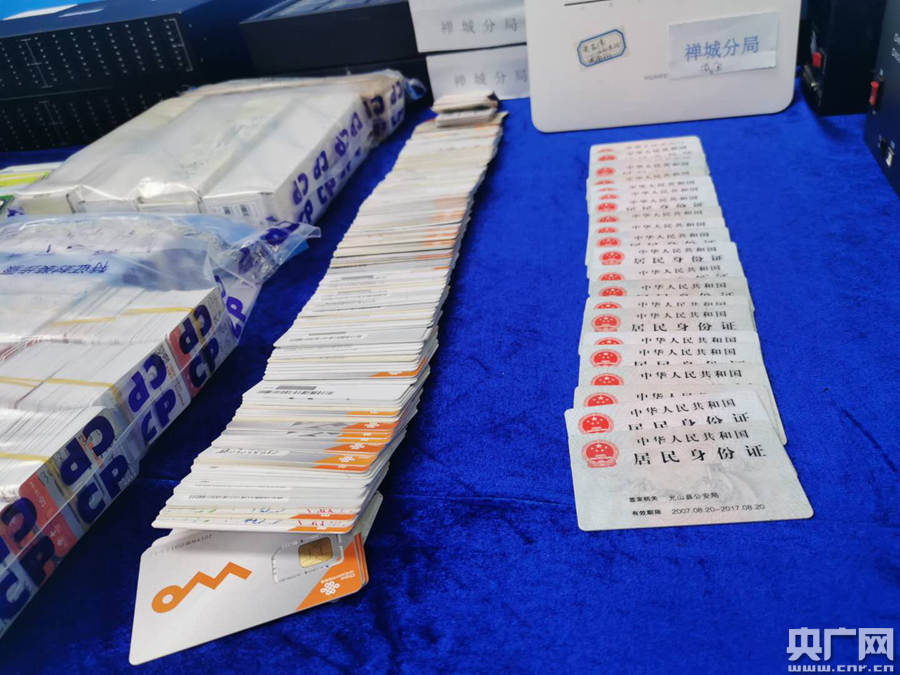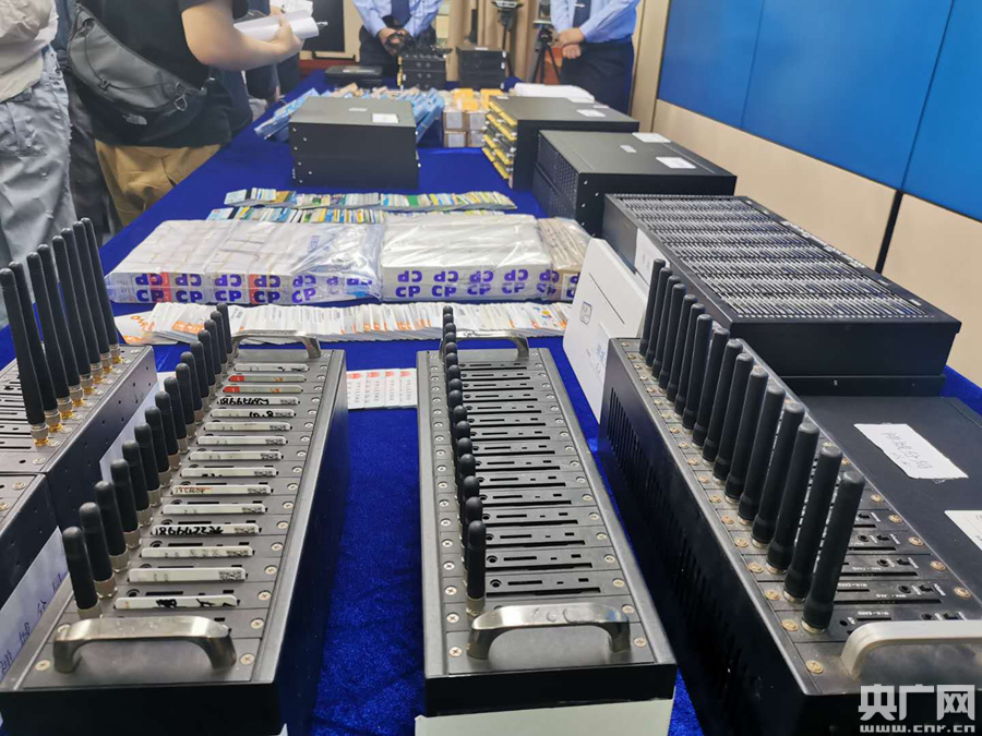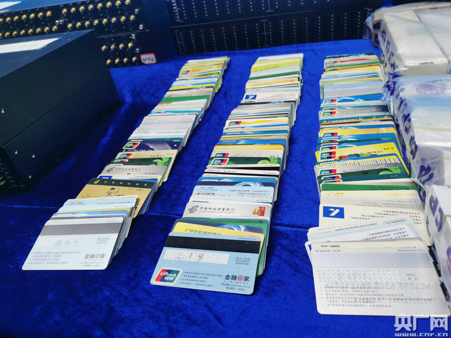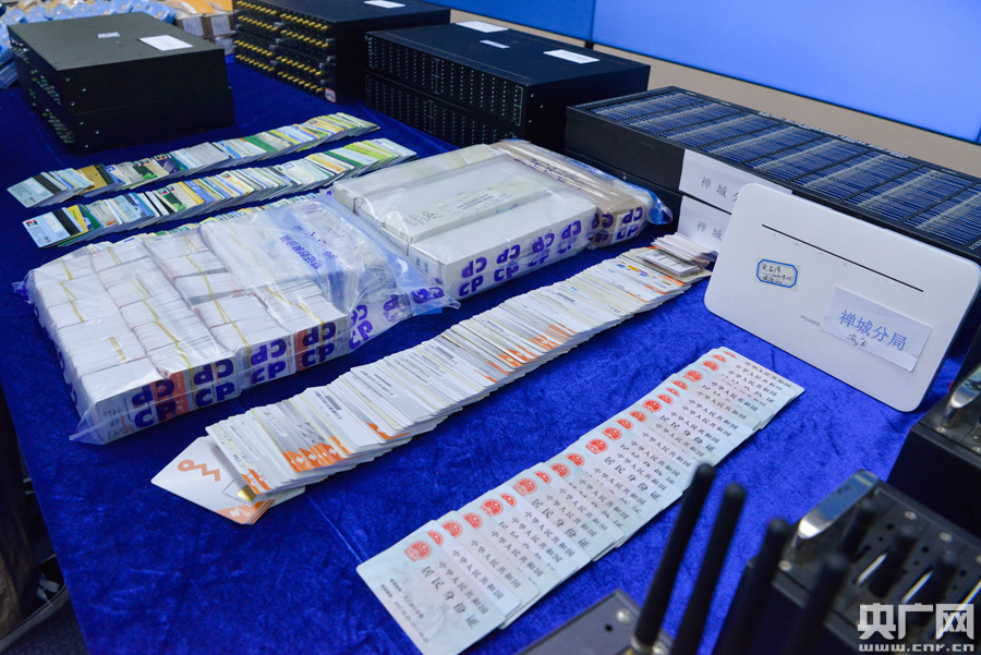 廣東縱深推進(jìn)“斷卡”專項(xiàng)行動(dòng)取得實(shí)效。圖為查獲的涉案物品(央廣記者 鄭澍 攝)