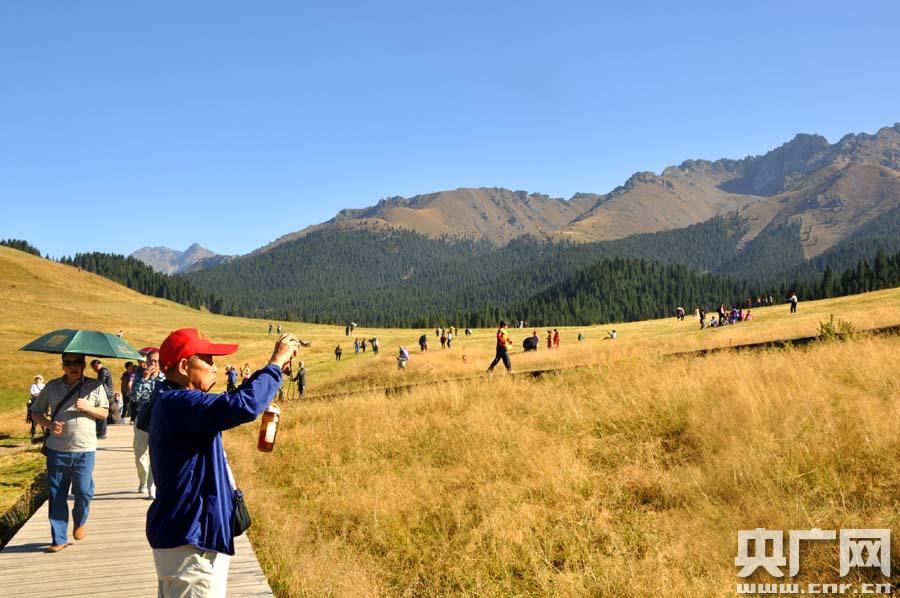 歡迎儀式現場游客們合照留念(央廣網發 徐燕 攝) 央廣網昌吉9月18日消息(記者張雷 昌吉臺記者朱麗君 通訊員徐燕 嚴海燕)“這里的原生態景色太美了,天藍藍的,空氣也特別清新,感謝旅游專列帶我們來到這里,讓我看到了新疆的壯美,感受到了祖國的偉大,不虛此行!”福州游客莊學平興奮地說。 9月17日,新疆奇臺縣迎來了800多名遠道而來的“親人們”——福州援疆·絲綢之路旅游專列滿載著福州人民的祝福,來到新疆。奇臺縣在江布拉克景區載歌載舞,熱情歡迎來自東南之濱的嘉賓。 2017絲綢之路·福州援疆旅游專列是福建援疆福州分指揮部在福州市旅發委、對口辦和奇臺縣委、縣人民政府的大力支持下,積極響應國家“一帶一路”倡議號召,深入貫徹落實第六次全國對口支援新疆工作座談會和全國旅游援疆工作會議精神,組織開通的昌吉州首趟旅游專列。專列于9月9日正式開啟,涉及行程包括:內蒙古包頭、寧夏中衛、陜西韓城、甘肅敦煌、新疆吐魯番、喀納斯、奇臺江布拉克等景區,歷時18天。 游客郭彩鳳今年82歲了,12年前曾來過新疆。自從踏上新疆的土地,上一次來新疆旅游的“畫面”像“放電影”在腦海中閃現。郭彩霞說:“這次來到新疆感覺變化太大了,社會和諧穩定,各族人民安居樂業。特別是江布拉克的雪山、草原太美麗了,讓人有一種久別重逢的激動,這次乘坐專列來,感覺很舒適、很有意義,值得一生記憶! 9月的江布拉克,秋染景區,深沉而灑脫。觸目可及的雪山,層巒起伏,延綿不斷,陽光照耀下,皚皚白雪顯得更加純潔;一眼望不到邊的松樹,身姿挺拔,像哨兵一樣守護著人間“美麗的凈土”,陣陣松濤之聲回蕩在幽深的山谷中;腳下松軟的草甸,隨著山勢的起伏,延伸到遠方,幾株還未凋謝的野花,向游客訴說著昨天夏日的熱烈;轉身相約的萬畝旱田,層層疊疊,金黃鋪地。小麥收割后,留下的黃澄澄的秸稈和機割后的美圖,空氣中散發著陣陣麥香;不遠處的田園風光,阡陌縱橫,農戶家輕煙裊繞,此景此情,如詩如畫,讓福州游客們流連忘返,爭相拍照,感受“中國大美、天山麥海、空中草原”綺麗風光帶來的心靈震撼。 黃洪川是來自廈門的游客,今年70多歲,退休前曾擔任廈門市老干局局長:“新疆我來過四次,前幾次都是公務活動,這一次感受最震撼,回去以后我要把奇臺的壯美分享給我的朋友,做江布拉克的宣傳員! “大家都覺得這里自然風景太美了,以后要帶著心愛的人來,希望全國有更多的人來這里旅游!90后魏萱是此次“絲路旅游·福州援疆”專列的領隊,在積極組織好此次活動的同時,她也隨時隨地充分感受著西域濃郁而熱烈的風情,“我們將來還要組織更多層級人士參加的旅游活動,把福州專列開好,真正成為新疆、福建兩地的友誼傳播專列、旅游觀光專列。” 奇臺縣委副書記、福建援疆福州分指揮長余養挺說:“奇臺縣正在全力打造‘浪漫奇臺,綠色康養’全域旅游,福州旅游業發展勢頭強勁,兩地旅游資源豐富,景致獨特,互補性強。福州要把旅游援疆和奇臺縣進行深入推進、合作,建立長效旅游機制,提升兩地旅游契合度、關聯度,讓‘絲路旅游·福州援疆’專列又穩又快地穿行于兩地,這不僅有利于增進福州和奇臺兩地各族人民的交流交往交融,還有利于推動奇臺縣實施全域旅游戰略,帶動第三產業經濟的發展,擴大奇臺縣知名度和美譽度。”