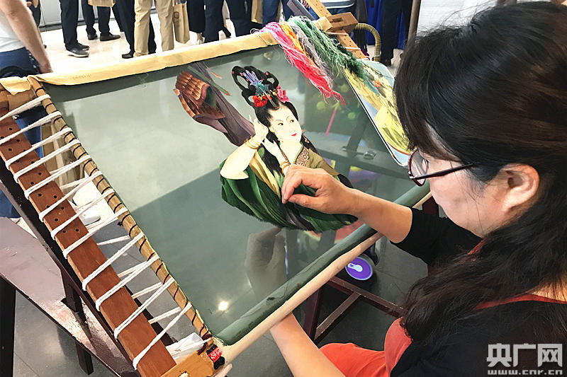 中國工藝美術大師現場展示湘繡雙面全異繡技藝(央廣網記者 堯遙 攝)