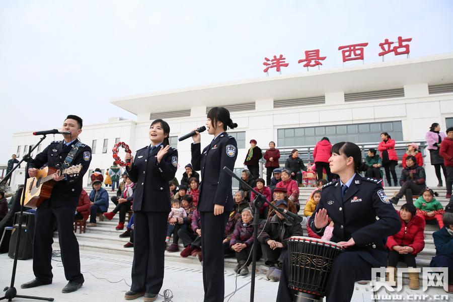 陜西安康鐵路民警為村民發放高鐵安全手冊 央廣網西安1月20日消息(記者雷愷 通訊員楊長空 黃超)“聽說才修的洋縣西站有演出哩,還給免費寫對聯。走,剛好下午暖和,咱們趕緊去看哈……”新建的西成高鐵洋縣西站附近的村鎮上,村民正熱烈地討論著民警的“節目演出”,互相間傳著口信。盡管車站附近的公路沒有完全修好,路面還是坑坑洼洼的,但周邊村民的熱情絲毫不減,相互結伴,有的還專門搬著小椅子,絡繹不絕地向車站廣場涌來。 1月17日,在“朱鹮之鄉”的陜西洋縣新建的高鐵車站廣場,來自陜西安康鐵路警方文藝輕騎兵的精彩演出引來了周邊鄉鎮的村民、放假在家的學生及觀賞朱鹮的游客爭相觀看。民警的一曲歌伴舞《我們好好愛》拉開了此次文藝演出的序幕,也點燃了現場群眾的熱情;快板《秦巴鐵警》用生動活潑的方式向現場群眾展示了鐵路民警立足崗位盡心履職的精神風貌;而“西成高鐵通漢中,入蜀返秦分分鐘,高鐵安全你我他,咱齊抓……”民警自編、逗趣表演的《高鐵安全知識三句半》,更是將整個活動推向了高潮,贏得了在場觀眾的陣陣掌聲和喝彩聲。 在表演間隙,圍繞文藝演出和高鐵安全出行知識,民警還積極與現場群眾展開互動,采取現場問答的形式向村民提問高鐵安全知識,對于回答積極的群眾,文藝輕騎兵成員送上現場書寫的春聯、“福”字,以及印有安全知識的布袋、水杯、宣傳冊等小禮品進行獎勵,豐富多彩的活動內容引來大家爭相作答,也讓高鐵安全知識深入到每個觀眾的內心。帶隊的警花趙玉梅帶著一群來看表演的小學生打著歡快的節拍,為小朋友現場教學“三句半”,孩子們認真的小臉上洋溢著燦爛的微笑,對于學習認真的孩子,民警還準備了印有安全知識的書包、文具、作業本作為“寒假”禮物。來自附近竹園村的村民鄭林興奮地對民警講:“沒想到,高鐵安全出行還需要我們來參與,覺得很自豪,我要把今天聽到的這些安全知識,給我周邊的人說一下”。而從西安自駕來洋縣拍攝朱鹮的攝影愛好者郭凡則告訴記者:“這次出來我不僅拍到了國寶朱鹮,還上了一堂別開生面的高鐵安全宣傳課,真期待下次乘坐高鐵再來洋縣拍攝朱鹮!” “新年好呀,新年好呀,祝福大家新年好!”在《新年好》的美妙歌聲中,安康鐵路警方的此次高鐵安全文藝宣傳伴著警民同樂的歡呼聲落下帷幕。 據了解,2017年春運以來,陜西安康鐵路警方持續推進“暖冬”行動,在充分保證旅客出行平安的基礎上,專門組建文藝輕騎兵深入正在建設的西成高鐵一線,用沿線村民耳熟能詳、喜聞樂見的歌曲、舞蹈、快板、三句半等表演形式,向村民宣傳、普及高鐵安全知識,也使大家了解到,在享受高鐵帶來的便利出行的同時,要牢記“高鐵安防,人人有責”,這也為2017年5月即將全線拉通試驗并在10月份正式通車的西成高鐵打下了一定的群眾基礎。在接下來的半年多時間里,安康鐵路警方將繼續通過多種形式的宣傳、走訪、摸排、調研等,進一步筑牢轄區高鐵安防的群眾基礎,為陜川高鐵大通道平安護航。