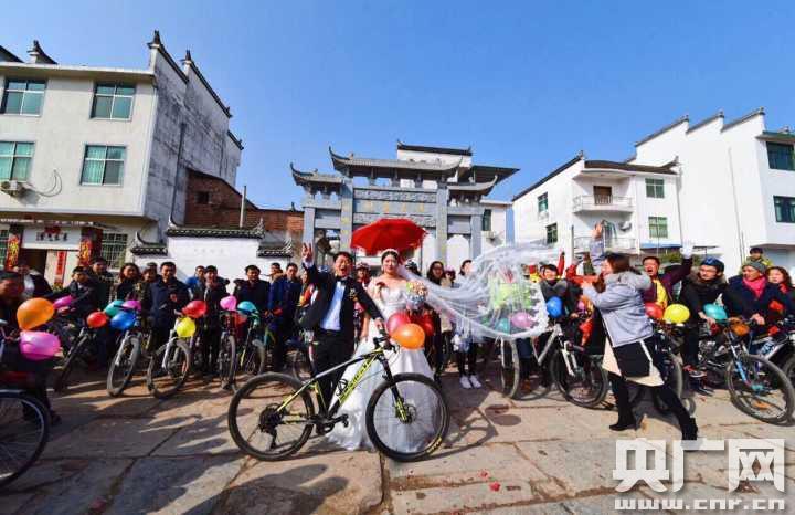 •   單車當“寶馬” 幸福娶新娘(央廣網發 戴繼民 單長華攝)   央廣網上饒2月8日消息(記者謝元森 通訊員戴繼民 單長華)2月6日,一場浪漫環保的婚禮在江西省婺源縣賦春鎮舉行。新郎吳淦文別出心裁,沒有請豪華的迎親車隊,而是讓幾十位車友騎著系有彩色汽球的單車組成迎親車隊,接新娘吳小妹進門。