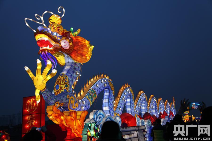 一條燈光組成的秦龍在古城墻熠熠生輝(央廣網(wǎng)記者 雷愷 攝) -