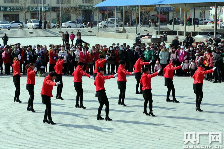 開(kāi)場(chǎng)(央廣網(wǎng)記者郭長(zhǎng)江 攝) 央廣網(wǎng)固原3月10日消息(記者郭長(zhǎng)江 許新霞 寧夏新聞廣播師杰)都說(shuō)寧夏固原的鄉(xiāng)村文化大院活動(dòng)搞得紅紅火火,百聞?wù)娴牟蝗缫灰?jiàn)。8日上午,到原州區(qū)采訪,碰巧趕上了彭堡鎮(zhèn)廣場(chǎng)上十里八村的婆姨們進(jìn)行“廣場(chǎng)舞大比拼”,慶賀節(jié)日。別看這些平時(shí)鉆溫棚、下地干活、搞副業(yè)還兼顧著照顧老人娃娃的婆姨們,跳起廣場(chǎng)舞來(lái),絲毫不比咱城里的差。 紅嘴唇、高跟鞋、穿著各村不一樣的色彩艷麗的自備演出服,很是有模有樣。隨著音樂(lè)擰一擰、扭一扭,那樂(lè)感毫不含糊。動(dòng)作雖然談不上整齊劃一,那一招一式可也是“鐵板上釘釘——有板有眼”,不一會(huì)就吸引了幾百號(hào)人駐足圍觀。 石碑灣村的一位自稱姓劉的婆姨告訴記者:“收入好了,日子也富了,開(kāi)始有了新追求了。晚上回到家,撂下飯碗,和村里的姐妹們跳起廣場(chǎng)舞來(lái)很爽快,從來(lái)不需要任何人上門(mén)動(dòng)員。有時(shí)候,高興起來(lái)姐妹們還在田間地頭上扭一扭,解解乏吶!笨磥(lái),這些婆姨確實(shí)比村里的爺們想得開(kāi)。 同行的原州區(qū)宣傳部副部長(zhǎng)郝彥暉頗有些自信地說(shuō):“這在前幾年,想都不敢想。日子好了,文化也自然而然形成了。這都是沾‘文化’扶貧的光。市、區(qū)兩級(jí)宣傳文化部門(mén)還給有規(guī)模的文化大院配備了些簡(jiǎn)單的音響設(shè)備。這些婆姨們心里明白著吶!” -