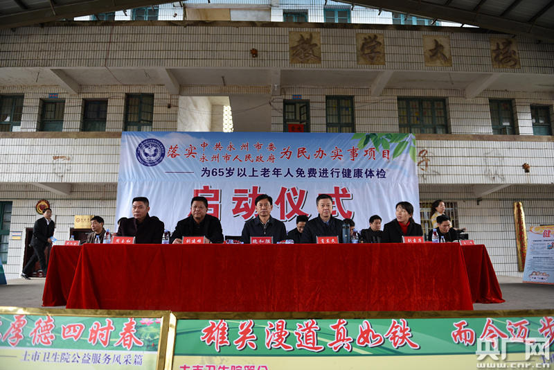 湖南永州為65歲以上老人進(jìn)行免費(fèi)健康體檢 央廣網(wǎng)永州3月23日消息(記者鄧文輝 通訊員梁利 鄧瑞宏)22日上午9點(diǎn)半到10點(diǎn),落實(shí)中共永州市委、永州市人民政府為民辦實(shí)事項(xiàng)目——為65歲以上老年人進(jìn)行免費(fèi)健康體檢啟動(dòng)儀式,在藍(lán)山縣土市新村舉行。各縣區(qū)衛(wèi)計(jì)委主要負(fù)責(zé)人、分管和負(fù)責(zé)基本公共衛(wèi)生服務(wù)項(xiàng)目工作的領(lǐng)導(dǎo)和工作人員,藍(lán)山縣各鄉(xiāng)鎮(zhèn)衛(wèi)生院院長(zhǎng),共100余人參會(huì)。 -