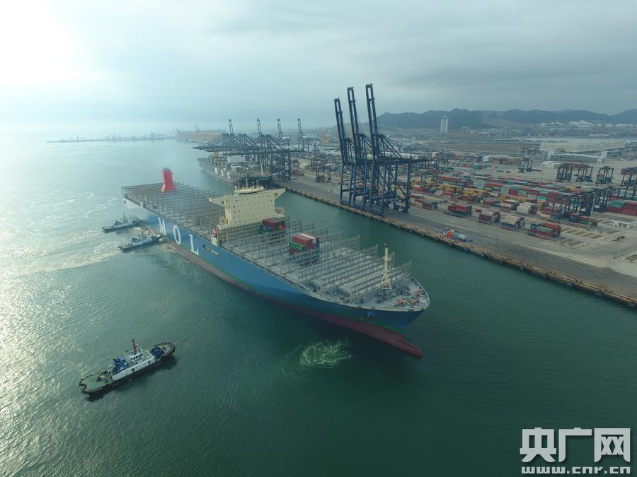 全球最大集裝箱船首靠大連港 滿載能力超2萬標準箱 央廣網大連4月5日消息(記者田彤 賈鐵生 通訊員臧永亮)繼3月1日順利接卸全球最大油輪“泰歐”之后,大連港再迎“全球之最”。4月5日上午,全球第三大航運聯盟——THE聯盟“大連—歐洲”遠洋干線的首航船舶,全球最大集裝箱船“商船三井成就(MOL Triumph)”輪靠泊大窯灣集裝箱二期碼頭。THE聯盟“大連—歐洲”遠洋干線輻射東南亞、聯通歐洲,為“21世紀海上絲綢之路”打通了又一條海上運輸通道。 據悉,“商船三井成就”輪船長400米,船寬58.8米,滿載能力達到20170標準箱,為目前全球最大的集裝箱船舶。該輪于今年3月27日正式交付使用,是全球首艘投入運營的超過2萬標準箱集裝箱船,率先開啟了“2萬標準箱船時代”。 目前,大連港已建成45萬噸原油碼頭、40萬噸礦石碼頭等一批世界級碼頭泊位,實現了“世界上有多大的船,大連港就有多大的碼頭”的發展夙愿,其中集裝箱專業化泊位18個,泊位最大水深-17.8米,可以滿足目前世界所有在航集裝箱船舶靠泊。包括此次開通的“大連—歐洲”航線,大連港集裝箱內外貿航線總數達到106條,航線網絡覆蓋全球160多個國家和地區的300多個港口,航班密度500班/月,東北地區98.5%以上的外貿集裝箱經大連港轉運。與此同時,大連港還構建了覆蓋遼寧、河北、山東地區15個港口的內支線中轉網絡,形成環渤海地區“海上穿梭巴士”,和以沈陽、長春、哈爾濱、通遼為核心,輻射東北全域的“4大中心、12大場站、31個站點”的內陸布局體系,擁有集裝箱班列線路41條,國際集裝箱樞紐港建設成效顯著,助力東北乃至環渤海地區對外開放水平的持續提升。 今年一季度,大連港累計接卸裝載能力1萬標準箱以上船舶58艘次,其中,1.8萬標準箱以上的超大型集裝箱船達到12艘次。 據悉,THE聯盟是全球三大航運聯盟之一,由赫伯羅特、陽明海運、商船三井、日本郵船、川崎汽船五大航運集團組建而成,旗下總運力達350萬標箱,占全球集裝箱船隊規模的18%。今年4月THE聯盟正式運營伊始,即在大連口岸開辟美線、歐線各一條,其中美西航線填補了大連港航線網絡的空白,使原來通過韓國釜山中轉的貨物可以直航到達美西港口,進一步提升物流服務水平,降低我國外貿綜合物流成本,為大連東北亞國際航運中心建設增添了重要砝碼。