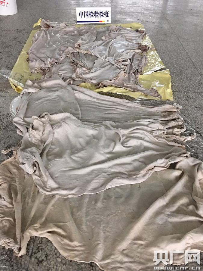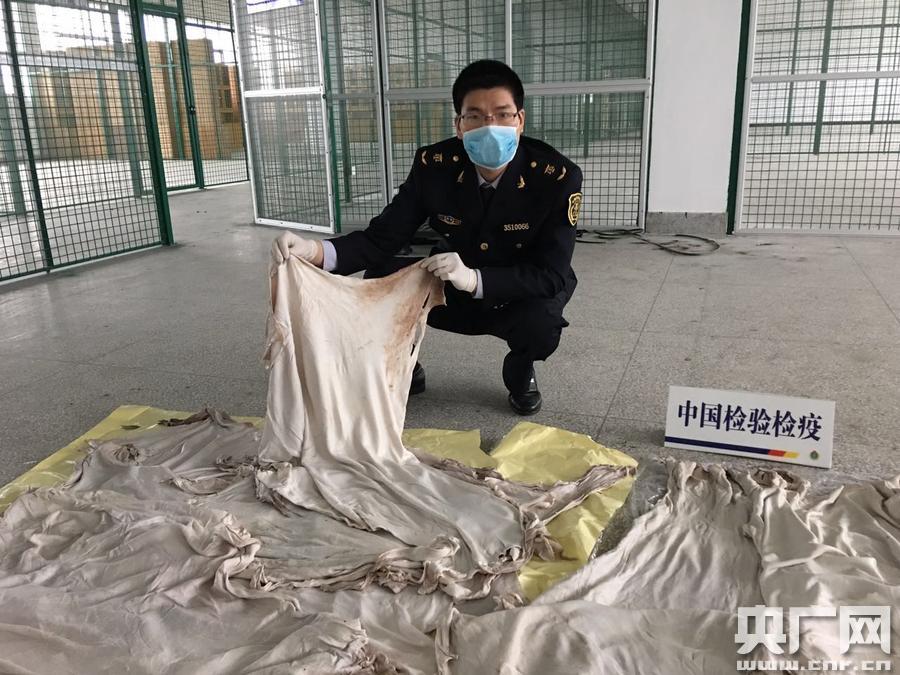 福建檢驗檢疫局首次截獲郵寄生袋鼠皮(通訊員供圖) 央廣網福州4月15日消息(記者張子亞 通訊員董向 趙凌 惠凱)近日,福州機場檢驗檢疫局與福州海關駐郵局辦事處工作人員聯合查驗入境郵包時,注意到一件包裹在X光機圖像上顯示異常。該郵包寄自澳大利亞,申報為“袋鼠皮樣”。工作人員將該郵包拆開后,發現內裝塑料桶一個,桶內共裝有袋鼠皮13張。這些袋鼠皮大小不一,有的3張一捆,有的單獨1張一捆,共有五捆、13張,總重19.3千克。每捆均隨附塑料紙一張,上面記載著該捆袋鼠皮的張數、規格(大。┮约暗燃墶I鲜龃笃るm經簡單加工去毛處理,但仍有腥味,部分皮張上的血跡依然清晰可見。這是福建檢驗檢疫局首次截獲郵寄生袋鼠皮。 根據《中華人民共和國進出境動植物檢疫法》及其實施條例規定,輸入動物產品必須事前申請檢疫審批并獲得許可;且動物皮張為《中華人民共和國禁止攜帶、郵寄進境的動植物及其產品名錄》內所列明的動物產品,屬于禁止攜帶、郵寄入境的物品。因此,福州機場檢驗檢疫局工作人員已依法對上述物品作截留處理,并取樣送福建檢驗檢疫局技術中心作進一步檢測。 袋鼠皮纖維方向統一而無汗腺,呈水平結構,制成皮革后強度高、耐磨損,兼具羊皮的柔韌性和牛皮的耐磨性,是制作皮包、手套、高端足球鞋的較好原料。隨著中澳自由貿易的快速發展,國內部分企業和個人希望借機從事相關加工貿易,開拓市場,從而獲取利潤。但值得提醒的是,未經深加工的動物制品極易攜帶動植物病原體,存在較大疫情風險。另外,部分袋鼠還可能涉及《瀕危野生動植物種國際貿易公約》(CITES)所限制的交易品種。如需進口此類物品,需事前向檢驗檢疫部門辦理檢疫審批手續,并提供輸出國或地區檢疫機關出具的檢疫證書,進境時向我國檢驗檢疫機構申報,經檢驗檢疫合格后方能進口。