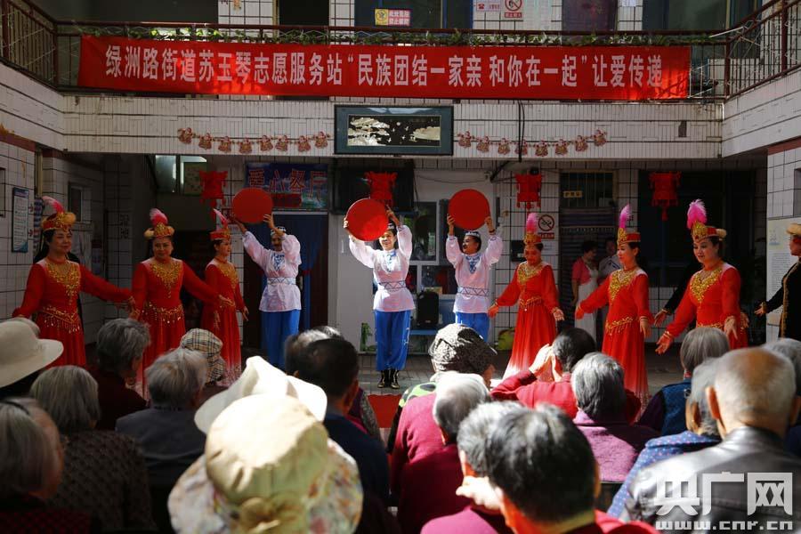 昌吉市綠洲路街道蘇玉琴志愿服務站的老人們在觀看演出 -