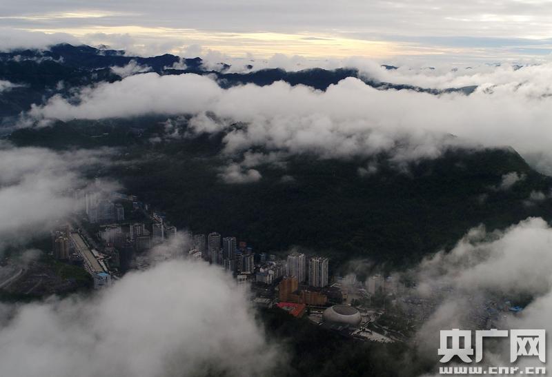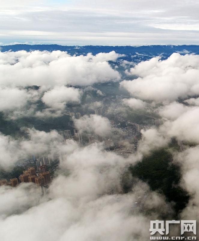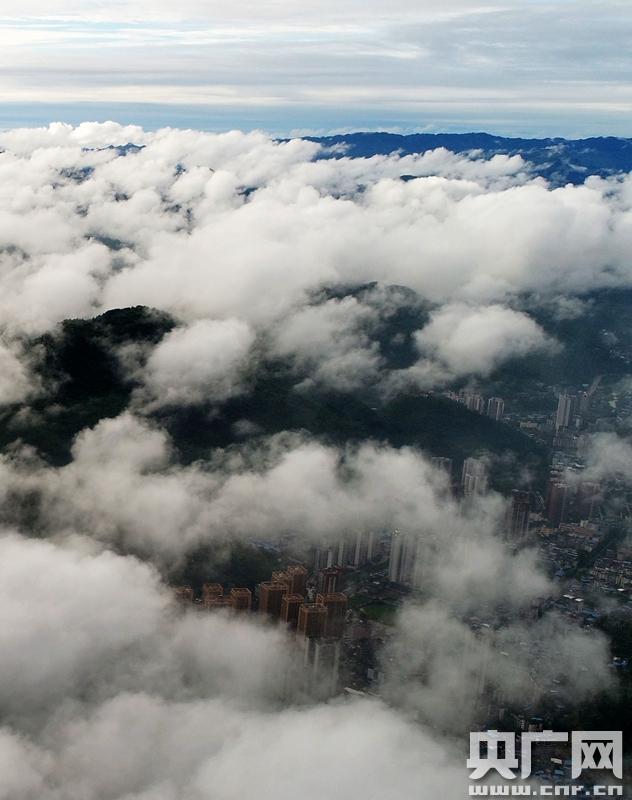 • 央廣網重慶6月20日消息(記者劉湛通訊員陳碧生)近段時間,重慶酉陽縣持續降雨,霧海頻現。記者近日來到金銀山上,從高空俯瞰群山環抱中的酉陽縣城,云霧繚繞鎖青山,勝似人間仙境。(陳碧生攝)