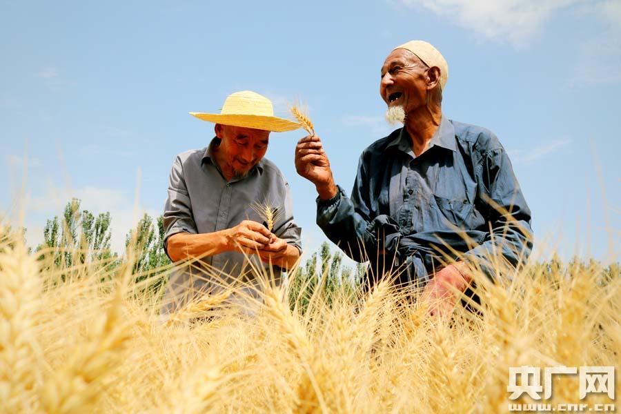 新疆焉耆萬畝優質小麥豐收 農民樂開懷(央廣網發 索佳妮攝) -