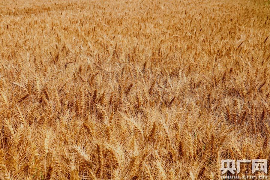新疆焉耆萬畝優質小麥豐收 農民樂開懷(央廣網發 索佳妮攝) 金黃的麥田里,機器穿梭,割出一道道淡黃色的線條,在廣袤的大地上勾勒出整齊的豐收畫卷。麥浪翻滾處,飽滿的麥粒瀑布般瀉進農戶的糧袋里。廣大農民抓住晴好天氣,搶收搶打小麥,確保顆粒歸倉。 -