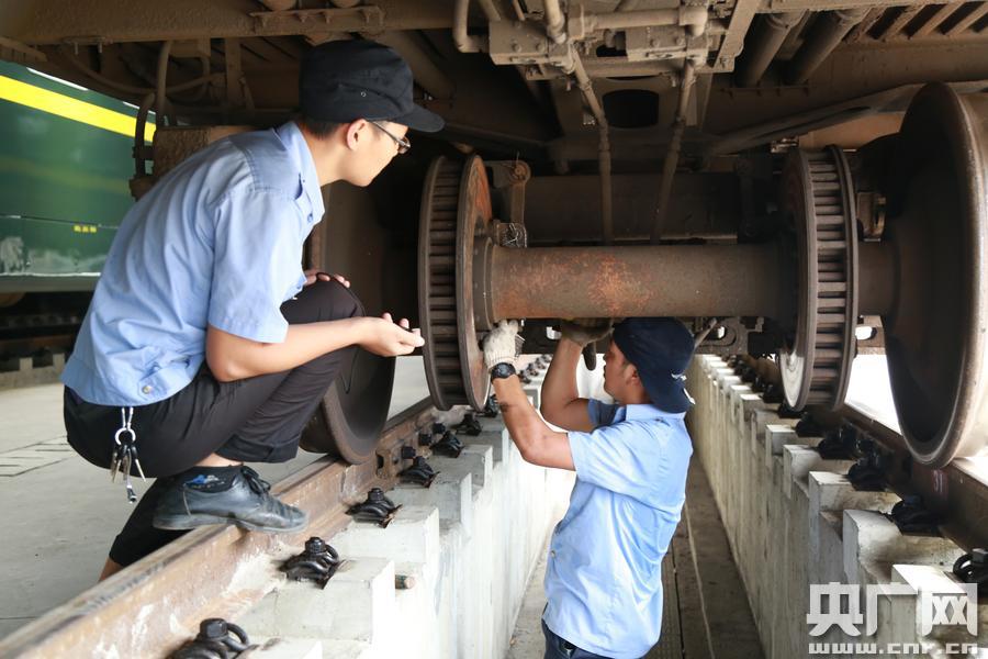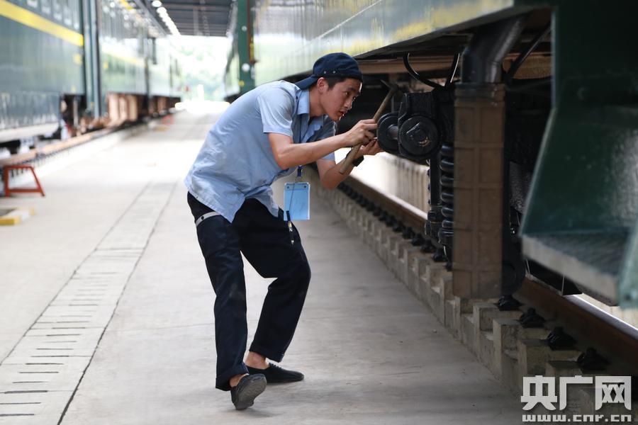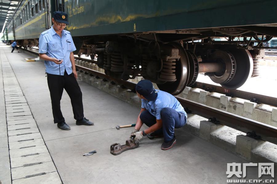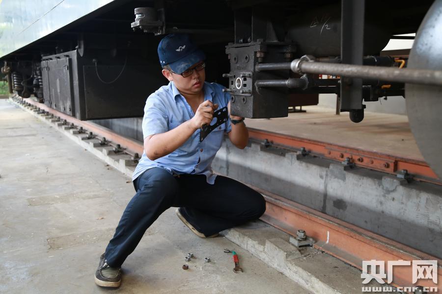 成都車輛段:訓練場上練技忙(央廣網(wǎng)發(fā)李軻攝) K1線的備戰(zhàn)如火如荼,K20線的選手也沒有閑著。“橡膠風檔無破損,定檢標記不過期,車體傾斜不過限。”青工何永鵬開始進行單車檢查了,“閉鎖不超135,全開不超250”,他仔細的進行車鉤狀態(tài)的檢查,隨后迅速地沿車體開始檢查走行部轉向架。“一位旁承間隙符合要求,三位旁承間隙符合要求。”何永鵬仔細地觀察著轉向架的各部狀態(tài)。“很好,很好,保持這個速度。”經(jīng)過車下車上共計33分鐘的檢查后,何永鵬只遺漏了一個故障點,教練隨即對整個檢查作業(yè)過程進行了點評,已是大汗淋漓的何永鵬一邊不住地點頭并在手賬本上記錄著教練傳授的“真經(jīng)”,一邊笑著說:“看來這要‘強基達標’真的需要訓練才能有真功夫”。 -